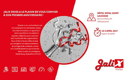 Dans le cadre si particulier du Royal Savoy Lausanne, JALIX SWISS a fêté son premier anniversaire aux côtés de ses clients, partenaires, soutiens et amis. [...]